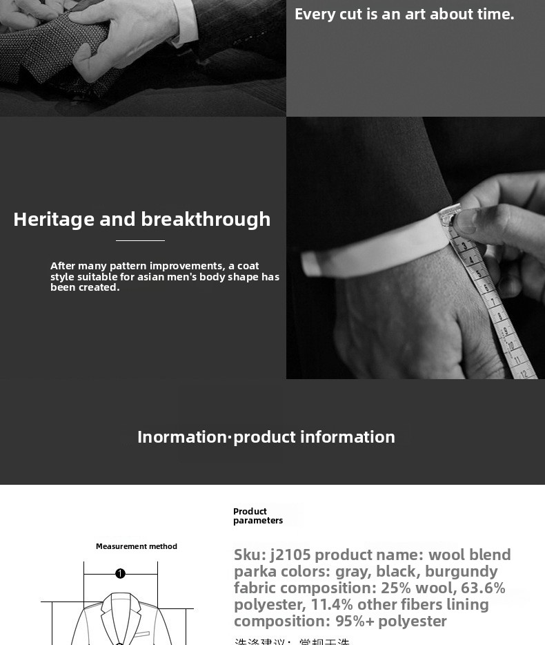 Crafted with precision, our men's wool jacket ensures durability and comfort. The fabric is selected carefully to provide both breathability and resistance to wear and tear. You won't just be investing in a piece of clothing; you'll be investing in quality that lasts. Therefore, it can withstand the trials of daily wear while still looking crisp and fresh, making it a versatile addition to your attire.