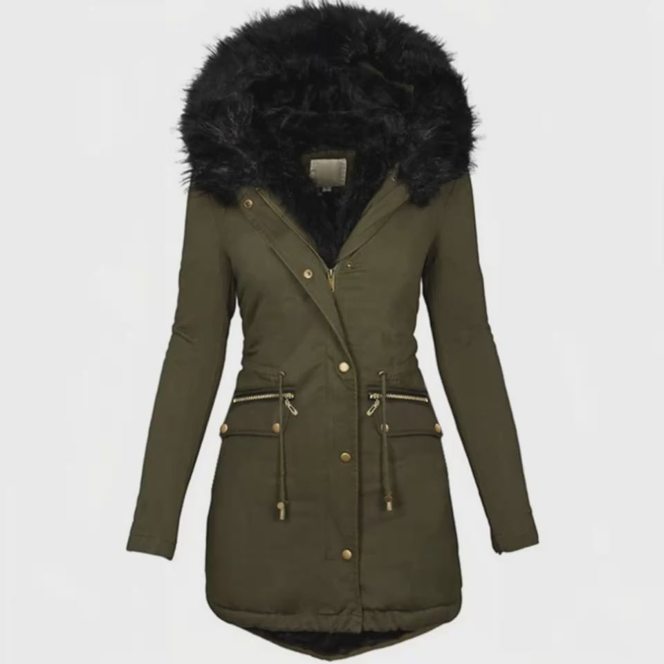 Cold weather can make everyday errands and outings uncomfortable; this parka solves that by combining thick insulating fill with a plush hood and a zip-up front for fast closure and wind protection. The straight cut allows room for layers without bulk.